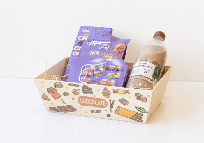 Doe een chocoladepakket cadeau of gebruik dit chocolademandje om chocola, bonbons en andere lekkernijen te verpakken. Vul het mandje met houtwol en pak het in met inpakfolie. Succes gegarandeerd!